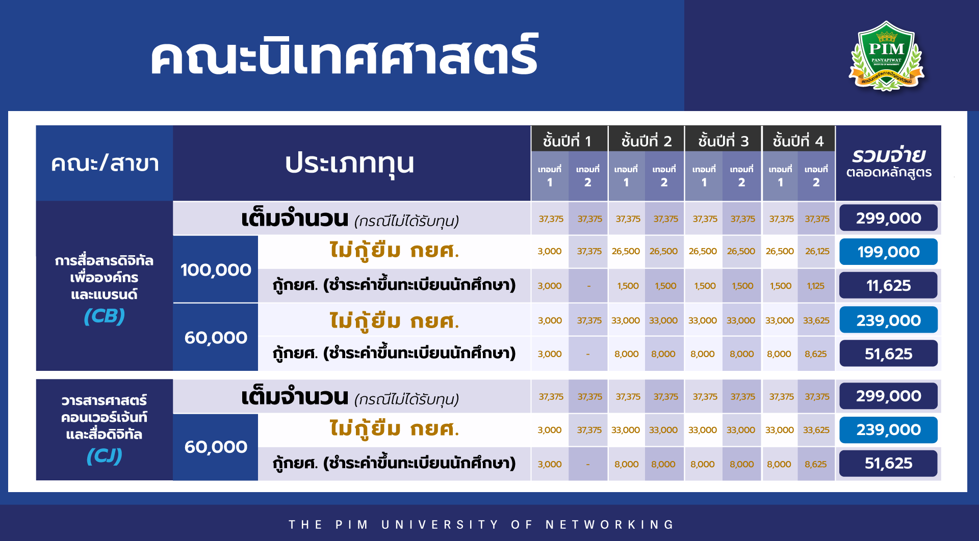ค่าเทอมตลอดหลักสูตร 299,000 บาท แต่มีทุนส่วนลด 23% , 50% และสามารถยื่นขอ กู้ กยศ. ได้