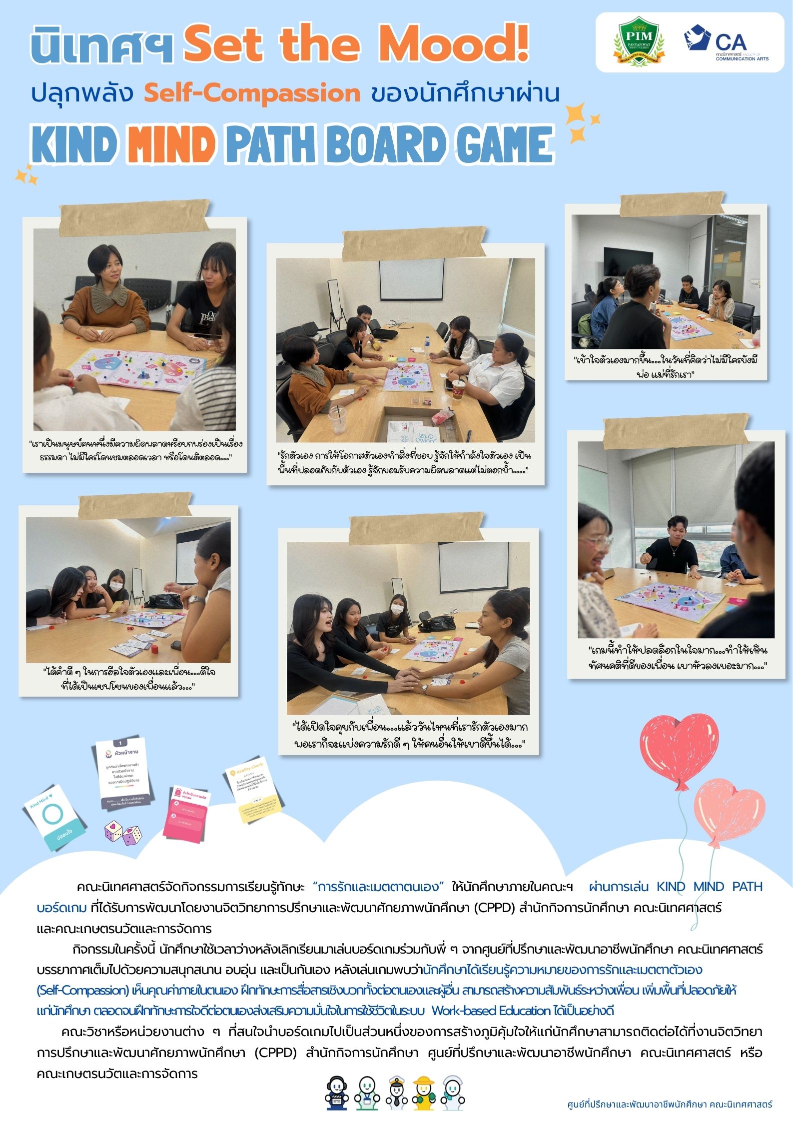 นิเทศฯ Set the Mood! ปลุกพลัง Self-Compassion ของนักศึกษาผ่าน Kind Mind Path Board Game พฤศจิกายน 18, 2025napatsanunamp napatsanunamp