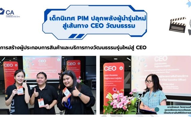 กันยายน 11, 2025เด็กนิเทศ PIM ปลุกพลังผู้นำรุ่นใหม่สู่เส้นทาง CEO วัฒนธรรม โครงการสร้างผู้ประกอบการสินค้าและบริการทางวัฒนธรรมรุ่นใหม่สู่ CEO : Culture Empowers Opportunity-Youth Camp